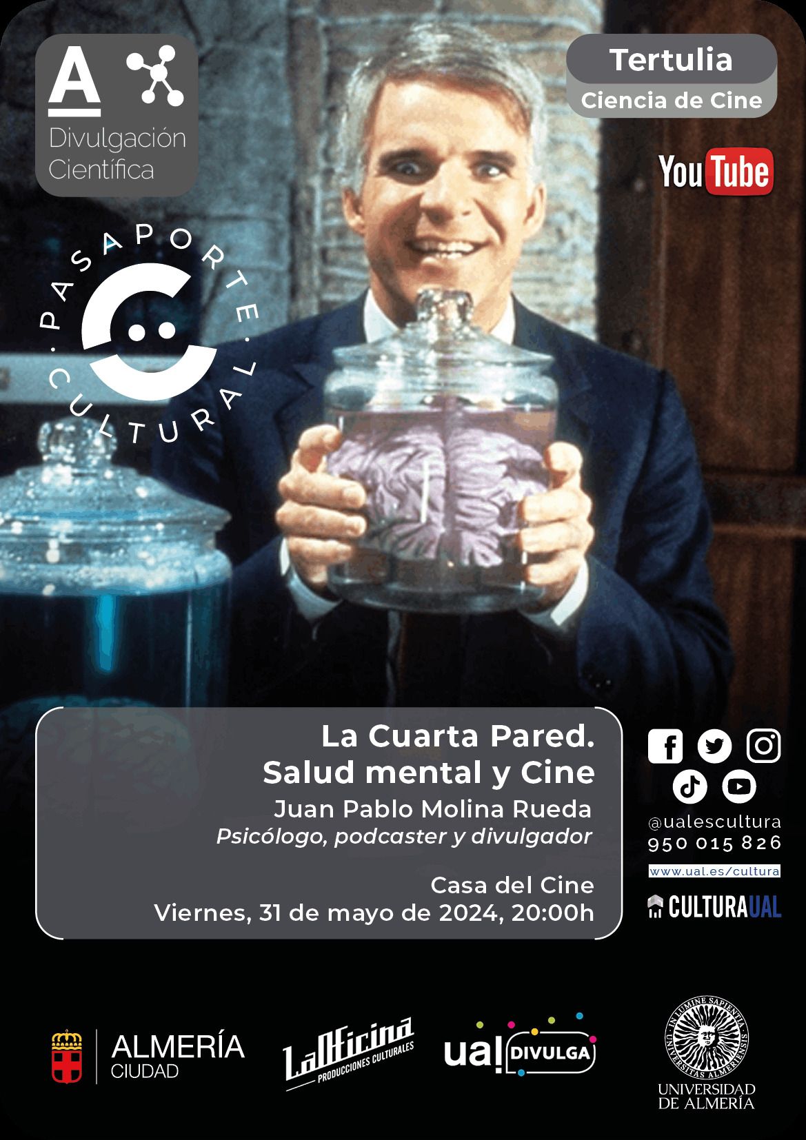 Otra cosa que te quería contar es que esta semana tenemos Ciencia de Cine en la casa del cine de Almería. Toca una charla de Juan Pablo Molina sobre la salud mental en el cine. Si vives en Almería deberías pasarte, porque te va a encantar. Te dejo el cartel con la info.